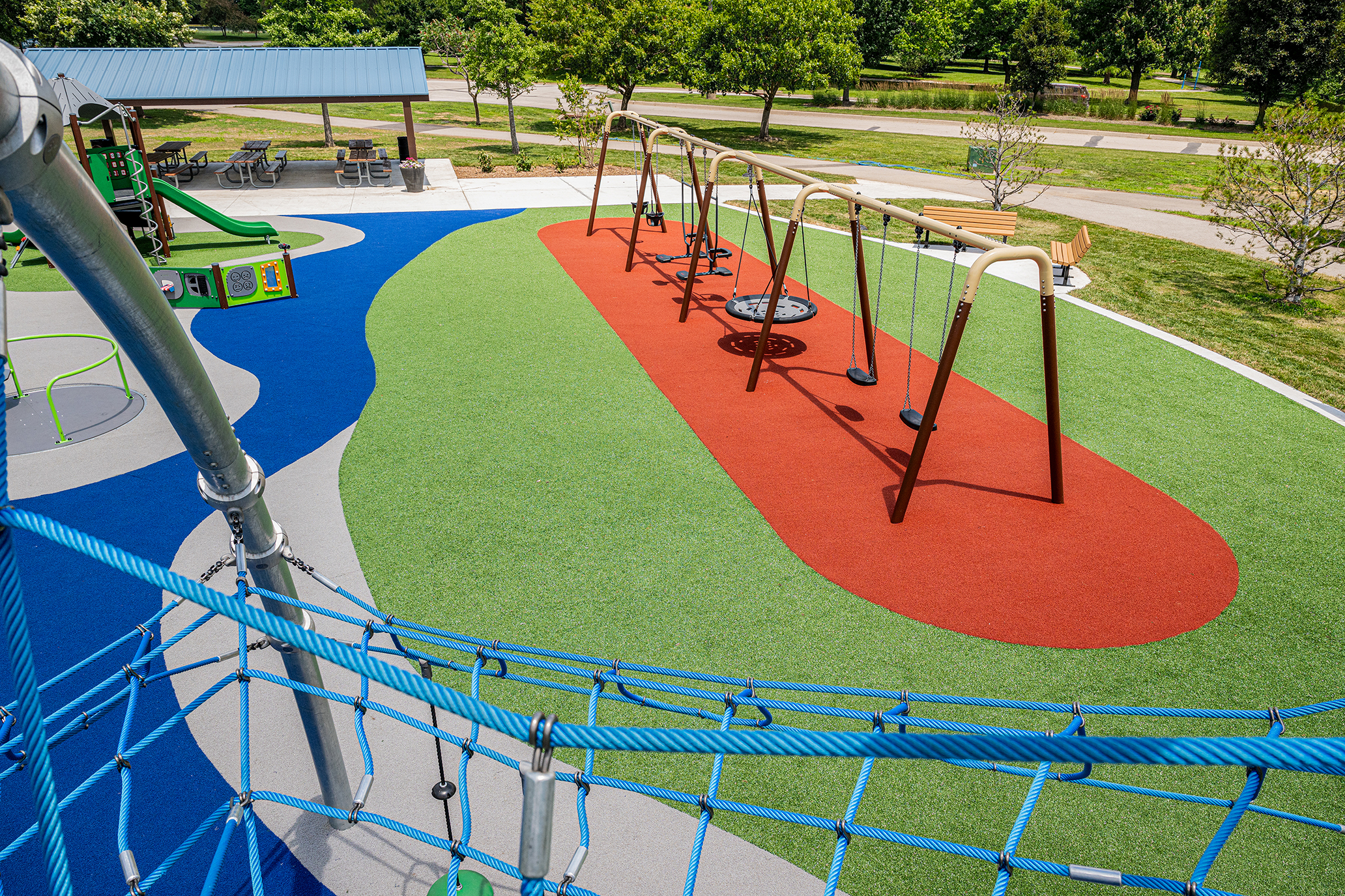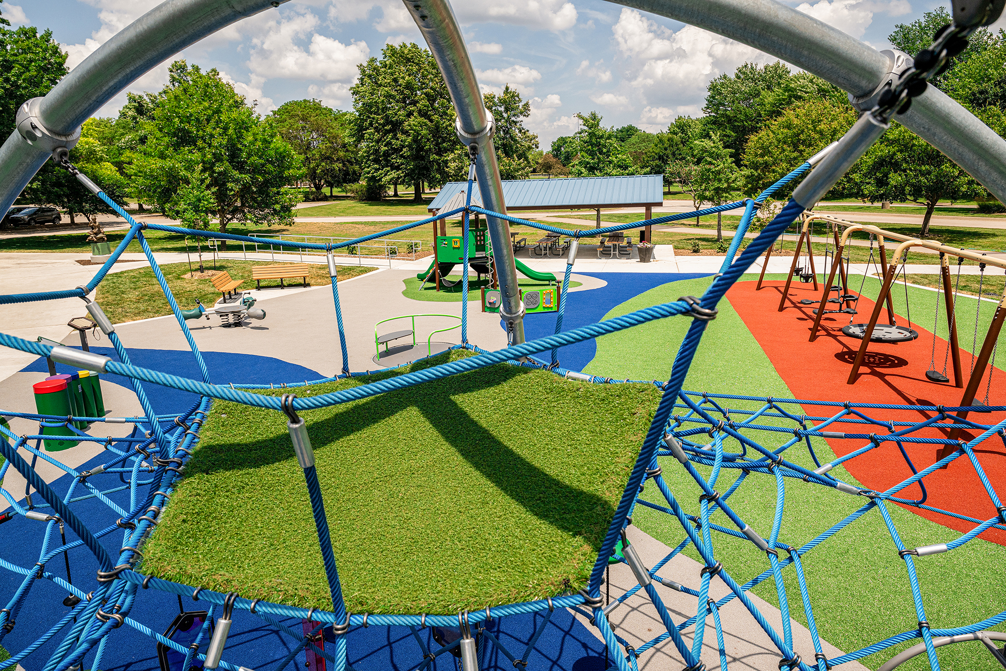 While the park already featured sports fields, a fishing pond, a farmers market, and the adjacent Black Bob Bay, a master planning process led by TESSERE revealed a critical need: a new, inclusive playground.