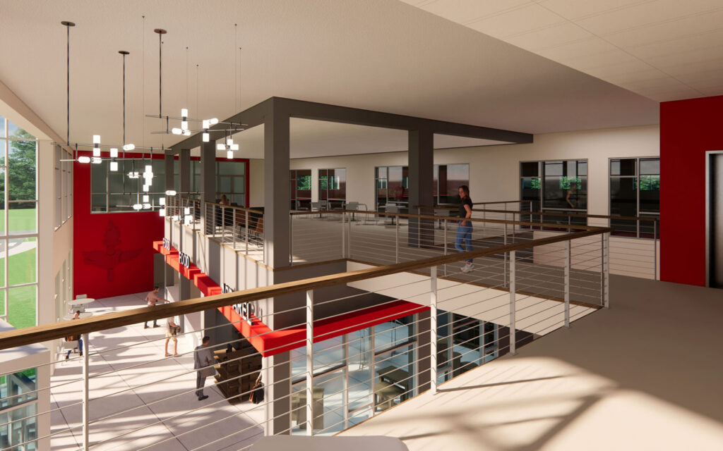 A department office suite, lab, and education spaces for the College’s new nursing program will be housed on the second floor.