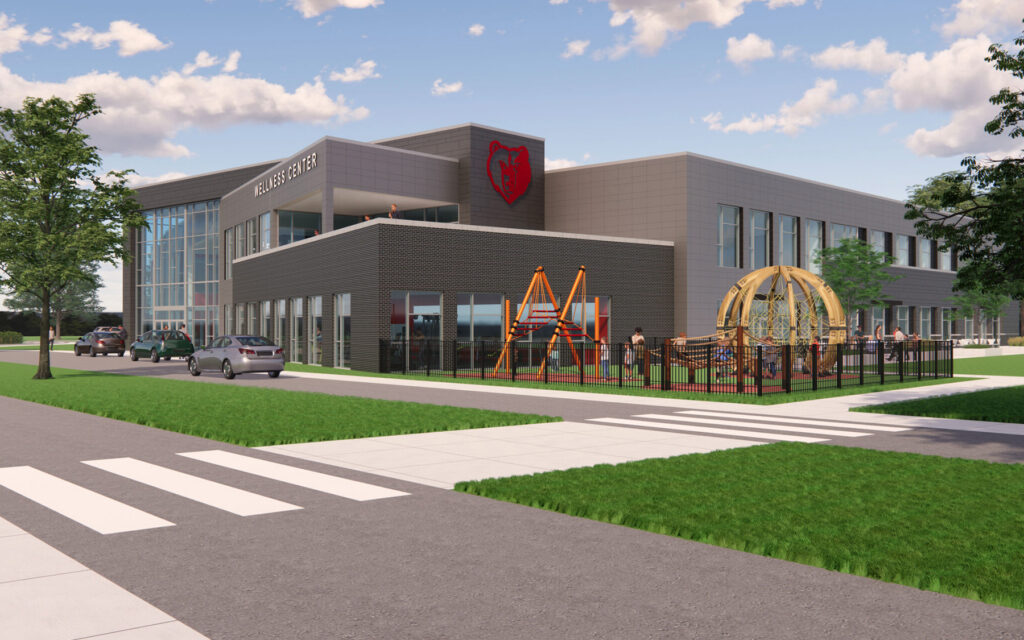 With a “student union” type feel, the 44,200-square-foot facility is meant to be a destination featuring a gym and fitness center, student education areas, office space, and retail and dining options. Located near the community’s soccer complex, the Wellness Center features many options for public use.
