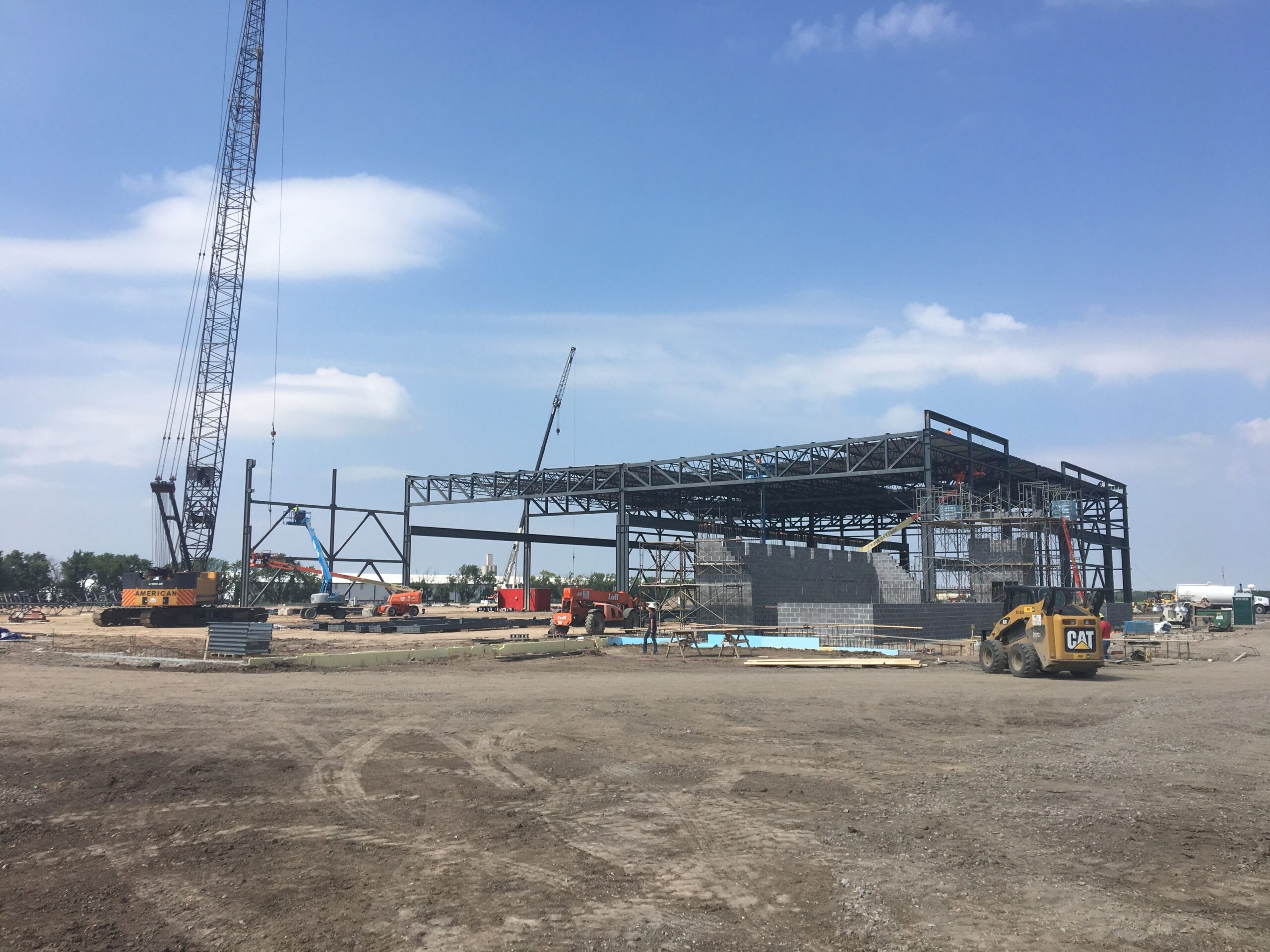 Viega’s McPherson campus has a new ProPress II Metal Fittings facility on the way. Our design team (Sterling Curry, Jeff Petrick, and Laura Heagler) began the building design in November 2017 and construction is expected to be completed in early 2019. Below is the two-week progress so far which involves the steel and walls going up for the facility: