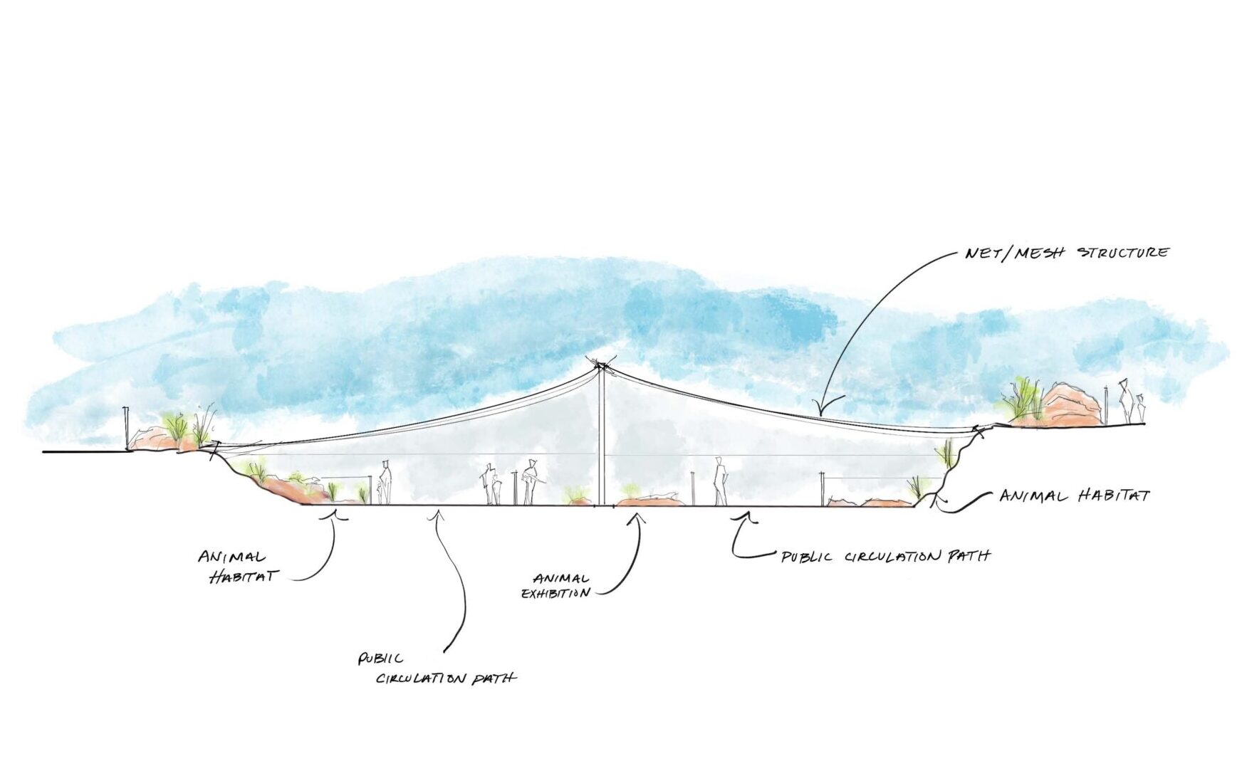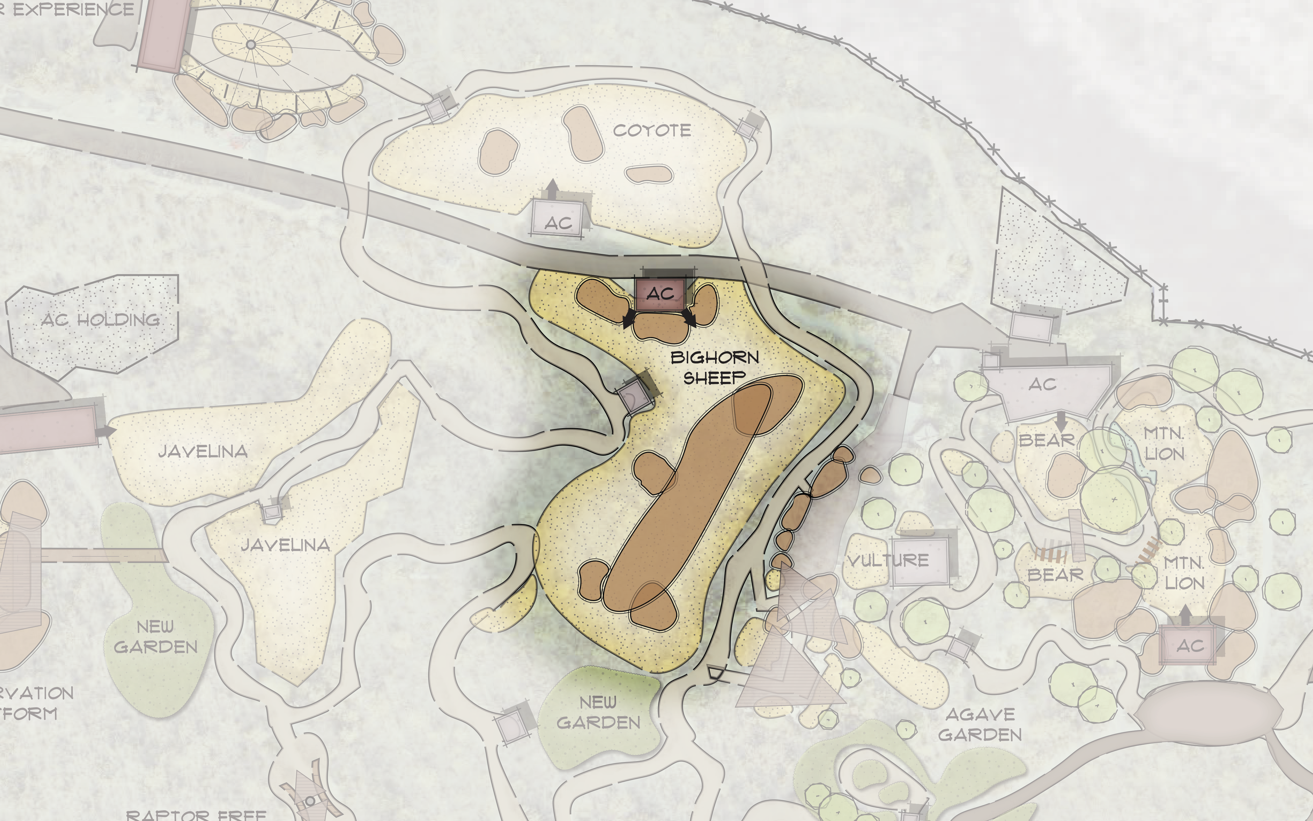 There is a hyper-focus on Sonoran Desert plants and animal species, which allows guests to experience a multitude of species thriving in their natural environment. The plan focuses on sustainability within the facility, in design and materials as well. One example is the Reptile Habitat and Indoor Experience. This exhibit has a low-environmental-impact design that allows protection from predators, with the intention of guests being able to see the animals in their natural habitat all while having a sustainable exhibit.