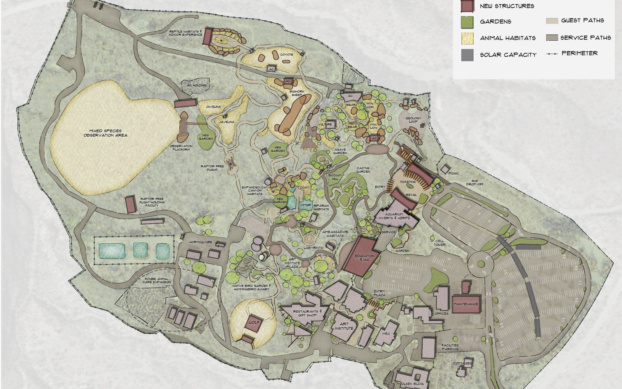 Another key feature of the plan is the re-activation of the theater, guests can be immersed in a multi-sensory educational experience to understand the nocturnal activity in the desert, while enjoying a break from the Arizona heat. The plan will be implanted in 3 phases, the first phase will span from 0-7 years followed by an 8–15-year plan and overall facility plan for the years to come (2038 and beyond).