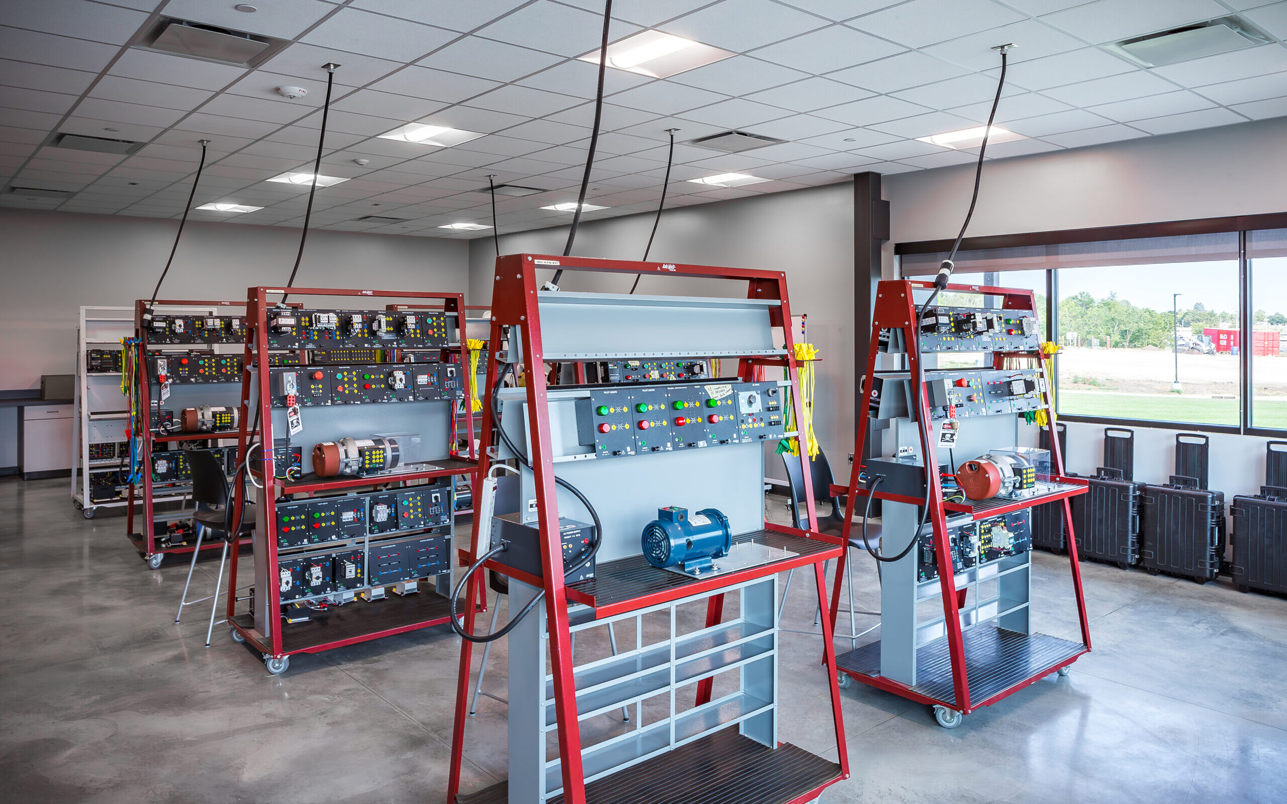 The Center houses programs in nursing, renewable energy, agriculture, and industrial technologies. In addition to traditional classrooms, the facility includes a nursing skills classroom and simulation lab, a climb/drone training area, a composite blade lab, a solar energy lab, a hydraulics and mechanical training lab, an A-frame renewable energy training lab, and dedicated lab spaces for agriculture, industrial, and welding programs.