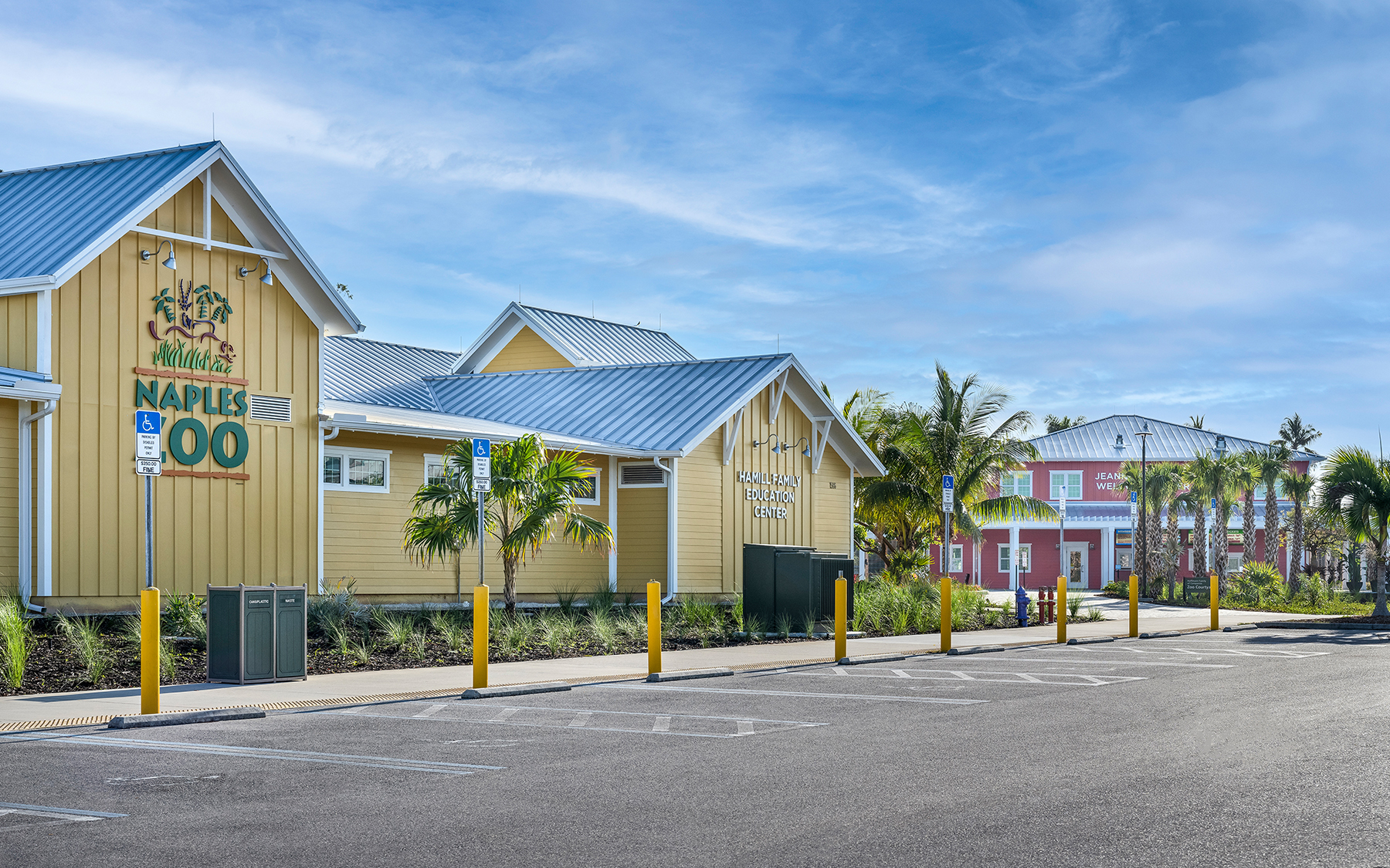 Few things are more important than making a good first impression, so Naples Zoo enlisted us to design a new entry that would enhance their visitors’ experiences before they even step through the gate. It includes expanded member services, gift shop, new education facility, and native animal habitats American alligator and flamingo.