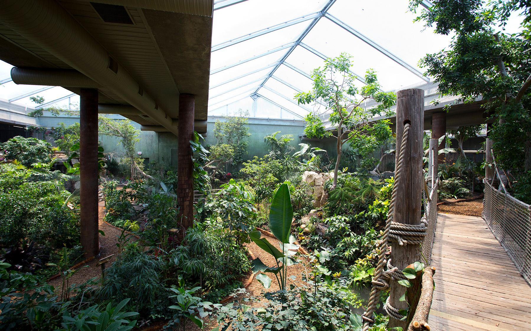 But the transformation didn’t stop at the roof. The entire jungle building infrastructure was overhauled to include new HVAC, mechanical, and electrical systems. An all-new animal collection, including flighted birds, giant fruit bats, new aquatic species, and small mammals, now calls Tropics “home.” In addition to new animals, all-new planting, interpretives, and habitats combine to create a vastly improved guest experience.